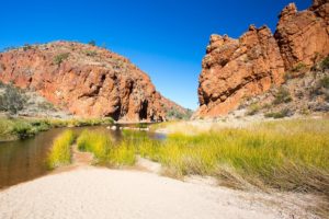 A view of Glen Helen Gorge on a clear winter’s day in Northern Territory, Australia